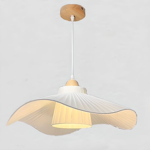 Pleated Pendant Lighting with Chalk Fabric Shade, Led & Incandescent/Fluorescent Light for Residential Use, Modish Style, Includes Cover, 110V-120V