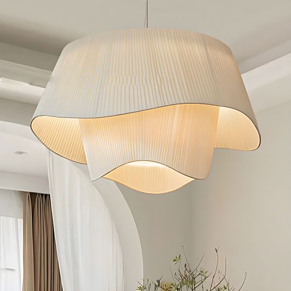 Wabi-Sabi Fabric Petal Pendant Light Japandi Pleated Layered Chandelier - 16" 110V-120V