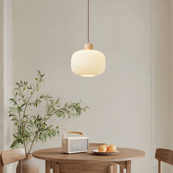 Nordic Japandi Ribbed Glass Pendant Light, Rubberwood & Glass Fixture for Kitchen & Dining Room - 110V-120V Jar