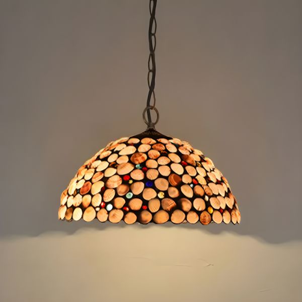 1-Ligh Pendant Lighting Tiffany-Style Dome Shape Stained Glass Hanging Light - 110V-120V Beige