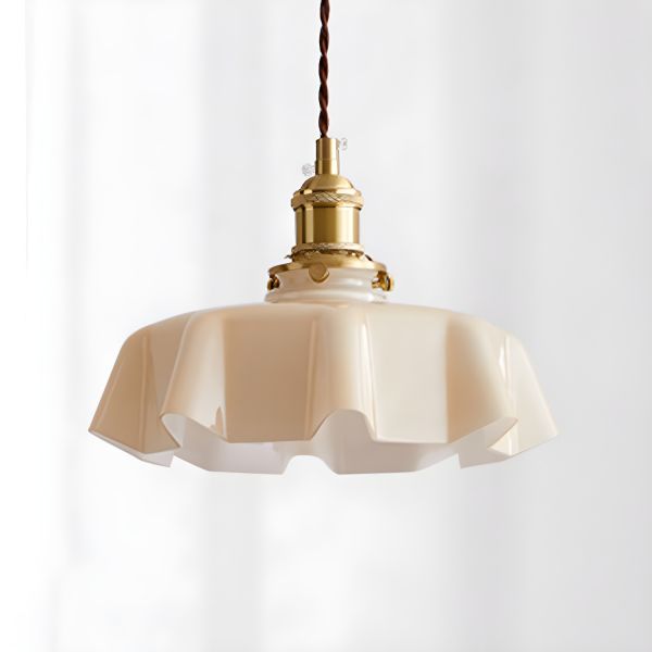 Mid-Century Scalloped Glass Pendant Light, Brass Hanging Fixture for Kitchen Island - 110V-120V Yellow