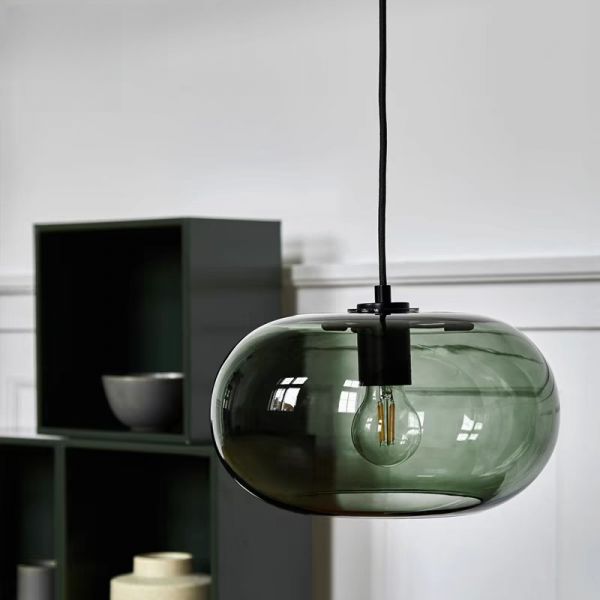 Light Green Pendant Lamp with Regular Shape, Shade, Glass Material for Residential Use, Direct Wired Electric with Led & Incandescent/Fluorescent, Green, 110V-120V