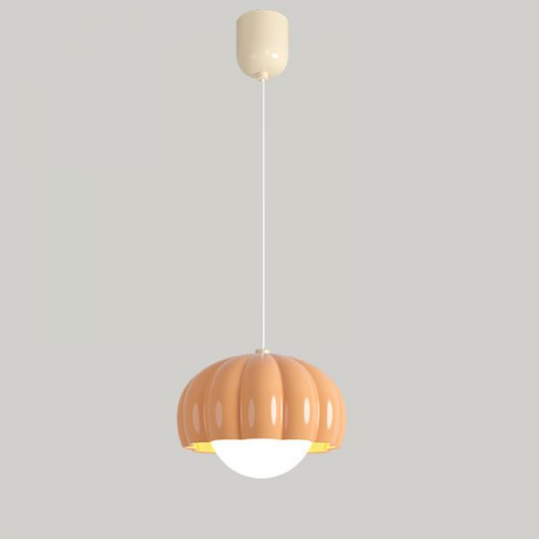 Opalescent Glass Pendant Lamp with Chalk Shade, Vitreous Material, Flexible Hanging Length, 1 Light, 110V-120V, Orange