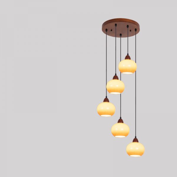Contemporary Cream Resin Shade Pendant Light with String Mounting, Bi-pin Light Type, 1, 110V-120V, Coffee