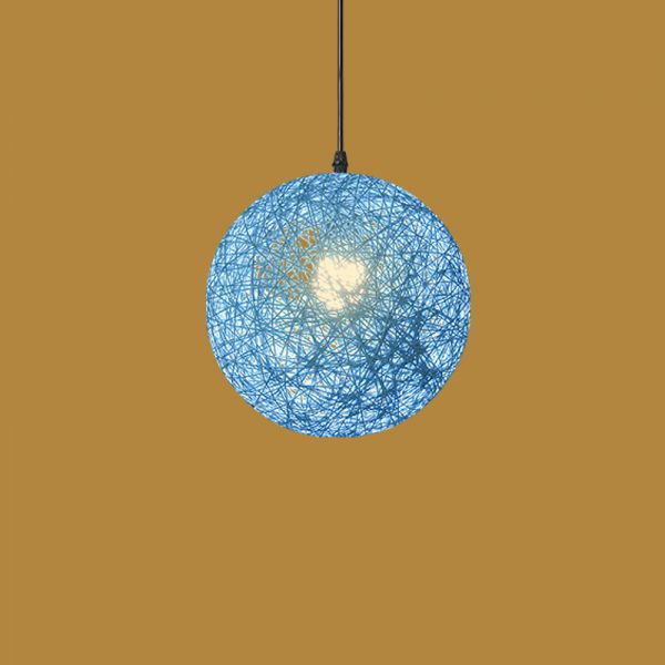 1 - Light Pendant Lighting Rattan Globe Shade Ceiling Pendant - 6" Blue 110V-120V