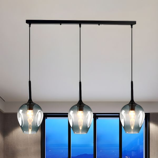 Tulip Dining Room Cluster Pendant Blue Glass 3 Lights Nordic Hanging Ceiling Light in Black