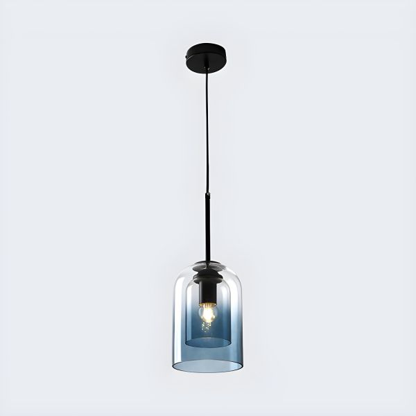 1 Light Modern Glass Pendant Light with Adjustable Height for Bedroom - 110V-120V Blue