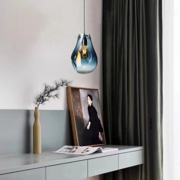 Modern Glass Pendant Light Adjustable Rope Hanging Lamp in Multiple Colors & Shapes - Water Drop 110V-120V Blue