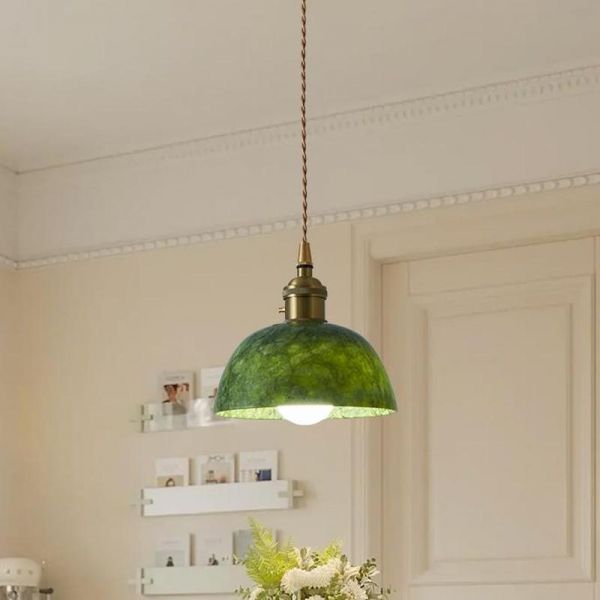 Vintage Pendant Light Glass Dining Room 1-Light Hanging Light Fixtures - 110V-120V Green Dome