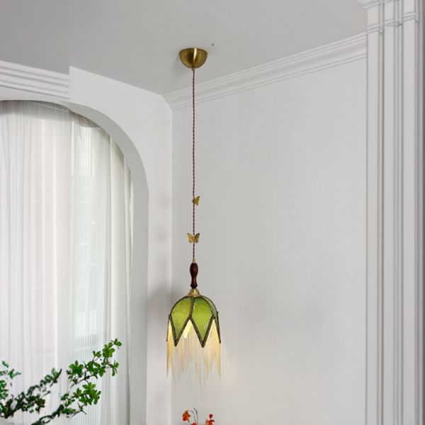 Traditional Olive Green Angular Pendant Light with Fabric Shade for Residential Use, Includes Lampshade on Thread, 110V-120V, 8.5"