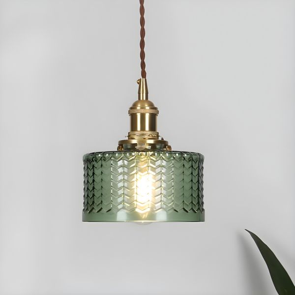 Cylinder Bar Bedroom Light Fixtures Industrial Rippled Glass Hanging Ceiling Lights - 110V-120V Green