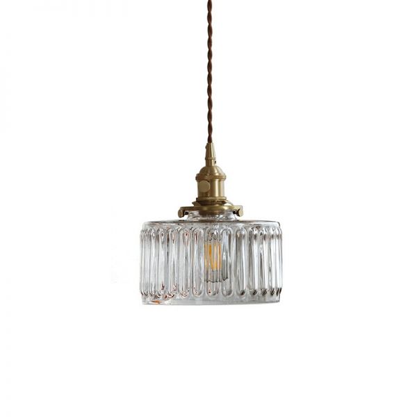 1-Light Clear Ribbed Glass Pendant Vintage Brass Finish Barn Shade Dining Table Ceiling Lamp - Brass 110V-120V