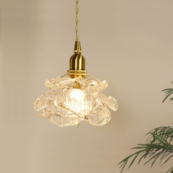 Floral Transparent Pendant Lighting with Rope Mounting, Glass Shade, Led & Incandescent/Fluorescent, Direct Wired Electric, Cover Included, 110V-120V