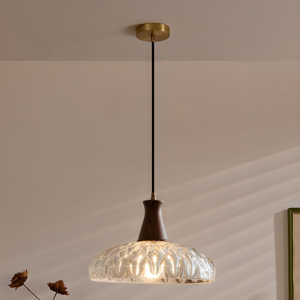 Clear Pendant Lamp with Shade Fixture, Tether Mounting, Glass Material, Led & Incandescent/Fluorescent, 1 Light, Direct Wired Electric, 110V-120V