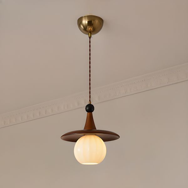Modern Style Wooden Hanging Light Living Room Copper Shade Pendant Lamp Fixture - 110V-120V 8.5"