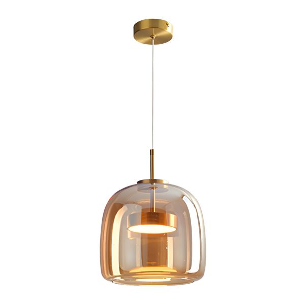 Contemporary Glass Capsule Pendant Light, Minimalist Layered Shade Hanging Fixture for Kitchen Island - 110V-120V Brass 27 cm