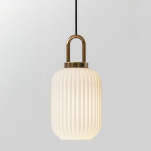 Mid-Century Ribbed Glass Pendant Light, Brass Hanging Fixture for Kitchen Island - 110V-120V 14 cm White