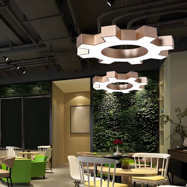 Industrial Modern LED Gear Pendant Light, Mechanical Cog Chandelier for Commercial Loft and Gym - 110V-120V Gold 23.5"