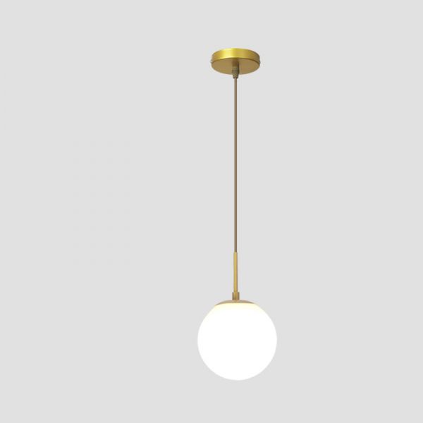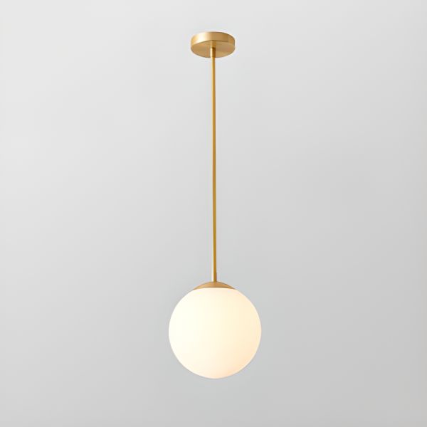 Mid-Century Brass Globe Pendant Light, Opal Glass Ceiling Fixture for Kitchen Island Dining Room - 1 Downrods 110V-120V 6"
