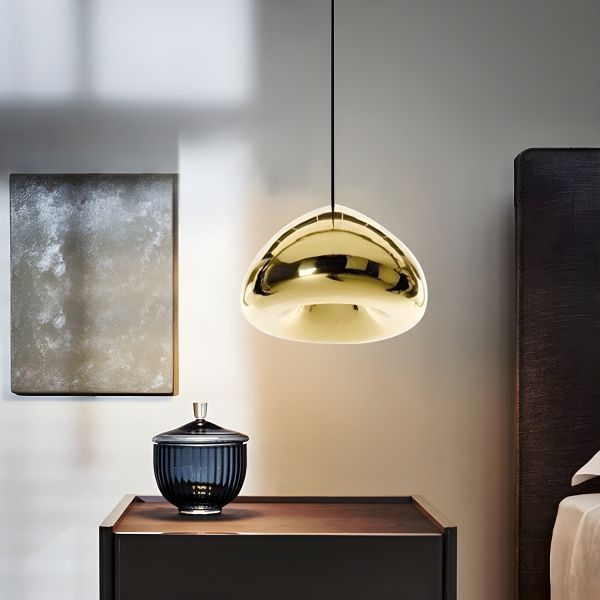 Contemporary Melted Glass Pendant Light, Irregular Lava Hanging Lamp with Mirror Finish - 110V-120V Gold 7"