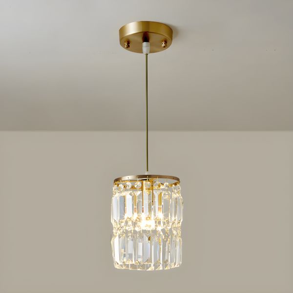 Contemporary Glam Crystal Pendant Light, Faceted Prism Shade with Brushed Brass Finish - 110V-120V 1