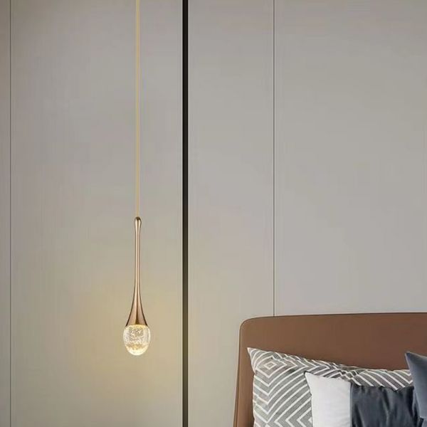 Modern Crystal Pendant Light, Mini LED Hanging Fixture with Solid Bubble Glass for Kitchen Island - 110V-120V Gold 1 Water Drop