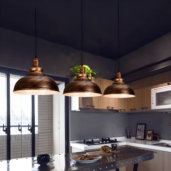 Industrial Farmhouse Metal Dome Pendant Light, Retro Hanging Barn Lamp for Kitchen Island - 110V-120V Gold 12"