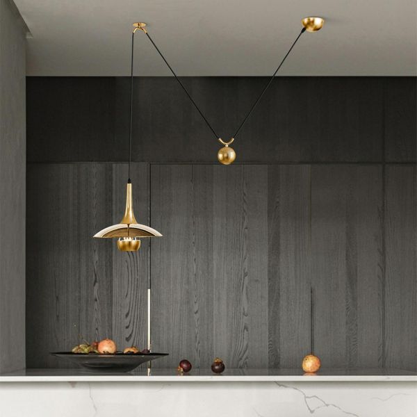 Mid-Century Industrial Pulley Pendant Light, Adjustable Rise and Fall Suspension with Metal Shade - 110V-120V Gold 12" 1