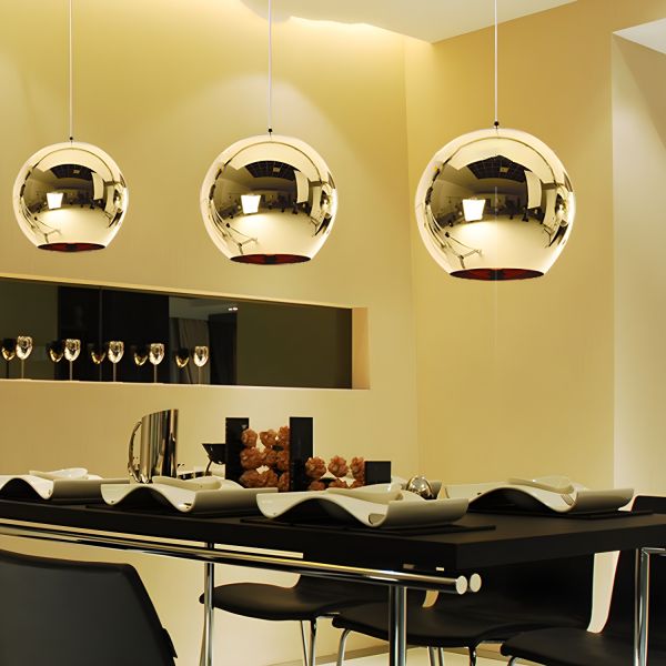Mid-Century Glass Globe Pendant Light, Reflective Mirror Finish Hanging Fixture with Adjustable Cord - 110V-120V Amber 15 cm