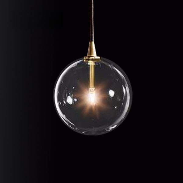Mid-Century Glass Globe Pendant Light with Brushed Brass Finish for Kitchen Island or Dining Room - 110V-120V 1 Clear
