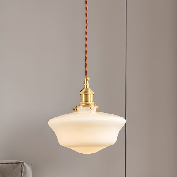 Vintage Schoolhouse Glass Pendant Light, Brass Hanging Fixture with Twisted Cord for Kitchen Island - 110V-120V 1 Round