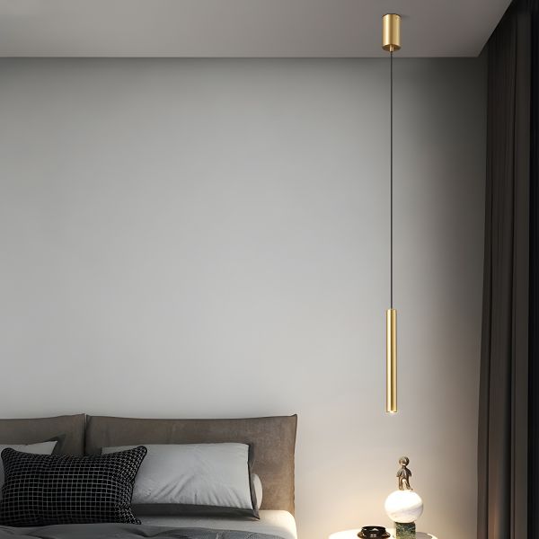 Sleek Minimalist Cylinder Pendant Light, Adjustable LED Hanging Fixture for Bedroom or Kitchen Island - 110V-120V 1 Gold White Light
