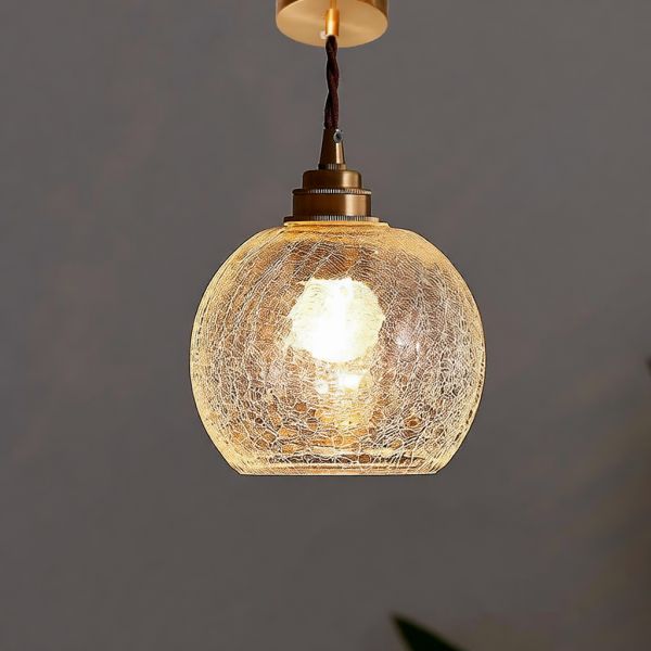 Crackle Glass Receptacle Ceiling Lamp in Golden, Tether Mounted Vitreous Shade for Ultra Modern Residential Use, 110V-120V, Transparent/Gold