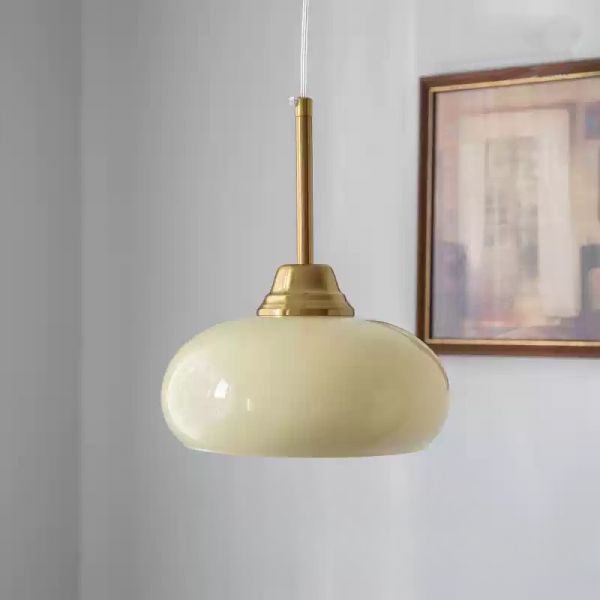 Milk Glass Pendant Lighting in Antique Brass with Angular Fixture, Vitreous Hardwired for Residential Use, LED & Incandescent/Fluorescent, 1, 110V-120V, Milky Yellow