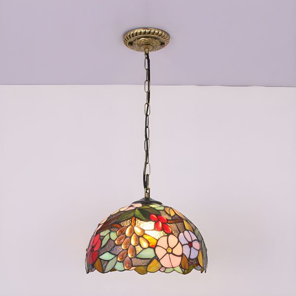 Vintage Tiffany-Style Stained Glass Pendant Light with Grape and Floral Motif, Antique Bronze Finish Hanging Lamp - 110V-120V
