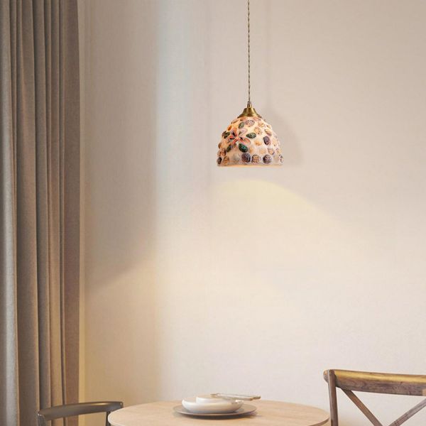 Coastal Seashell Mosaic Mini Pendant, Bohemian Handcrafted Hanging Light for Kitchen Island - 110V-120V Multi/Color