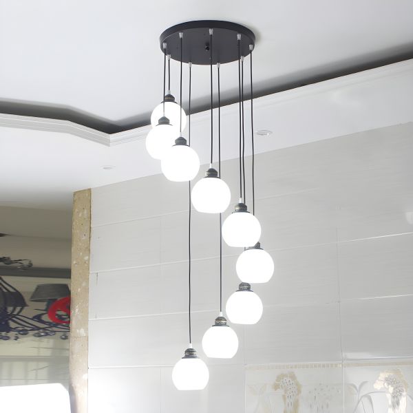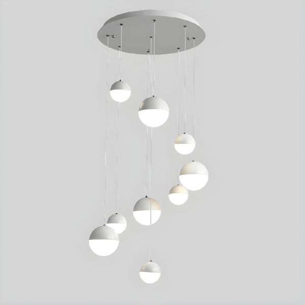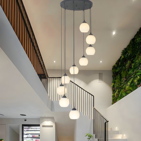 Contemporary Multi-Level Spherical Pendant Light for Staircase & High Ceilings - White 110V-120V Round 9 A