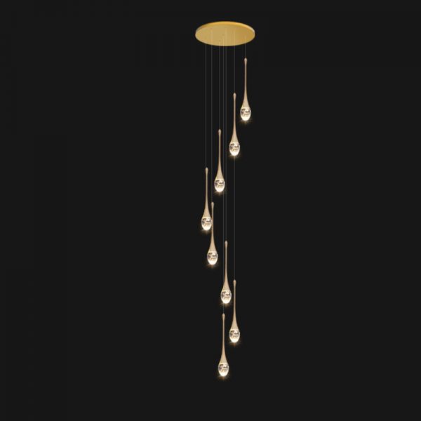 Luxe Gold LED Raindrop Chandelier for High Ceilings, Contemporary Staircase Pendant Light - 110V-120V 8