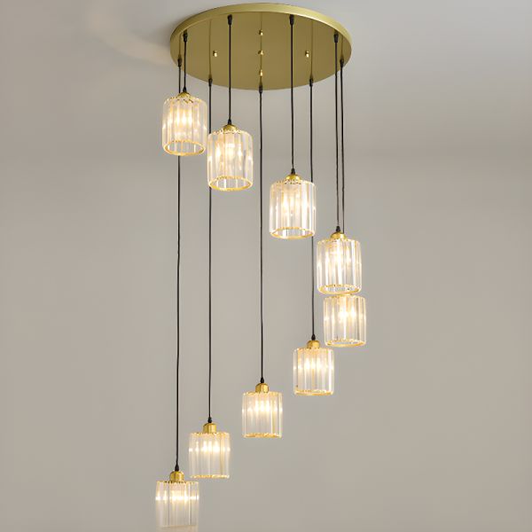 Modern Luxury Multi-Head Crystal Pendant Light, Cylindrical Stairwell Fixture for High Ceilings - 110V-120V Black 8 Cylinder