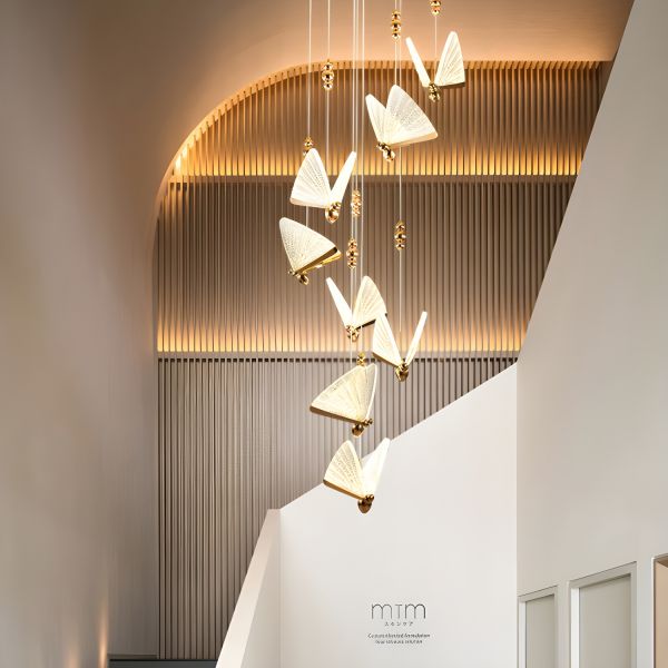 Contemporary Artistic Butterfly Chandelier, Adjustable LED Pendant with Engraved Acrylic Wings - 110V-120V Clear Large 8
