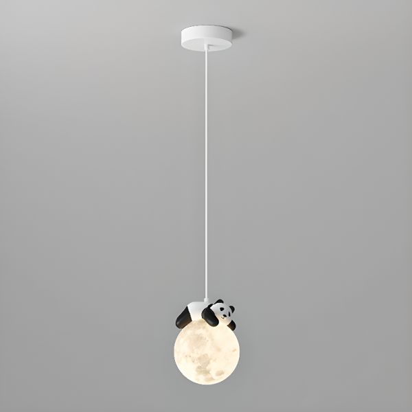 Whimsical Nursery LED Pendant Light, 3D Moon Hanging Fixture with Cute Animal Figures for Kids Room - 1 110V-120V Panda Lying