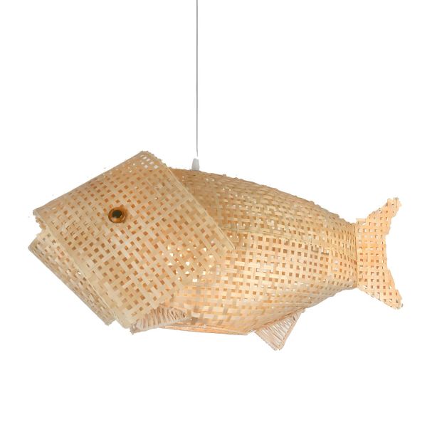 Handwoven Bamboo Fish Pendant Light, Artistic Rattan Koi Hanging Lamp for Coastal or Nursery Decor