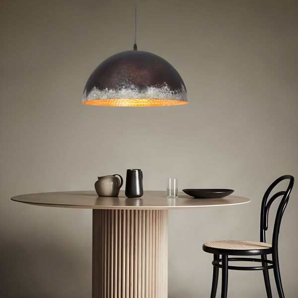 Rustic Industrial Hammered Metal Pendant Light, Distressed Bronze Lamp with Gold Interior