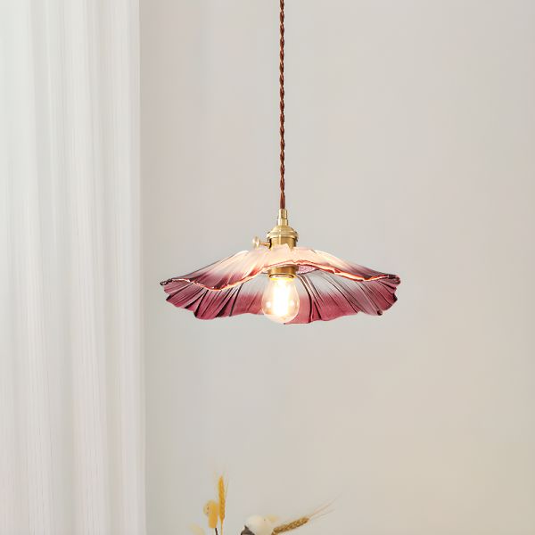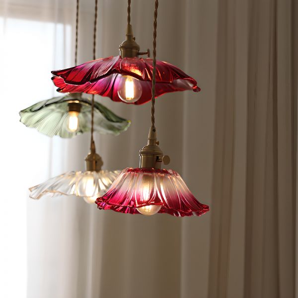Vintage Floral Glass Pendant Light, Hand-Blown Flower Shade Hanging Lamp for Kitchen Island