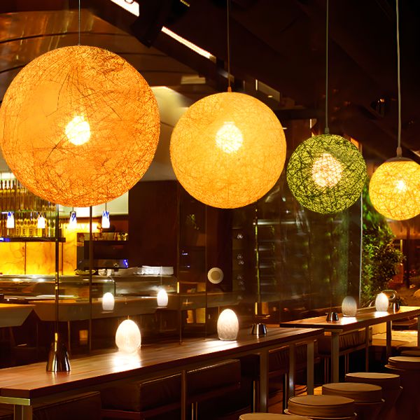 Bohemian Woven Sphere Pendant Light, Hemp Rope Globe Hanging Fixture for Ambient Glow