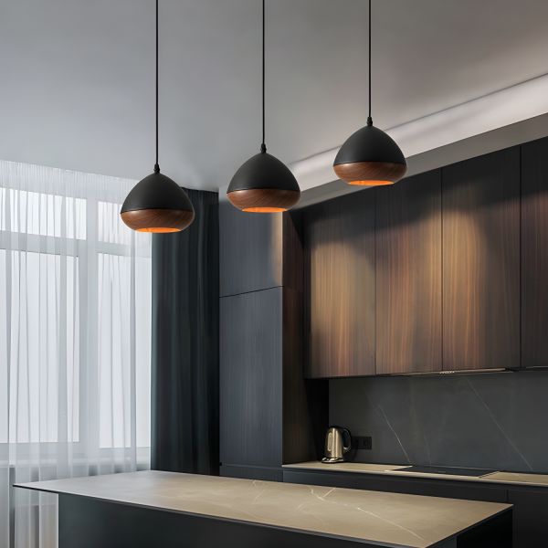 Nordic Minimalist Pendant Light Fixture with Natural Wood Accent for Kitchen Island or Dining Nook