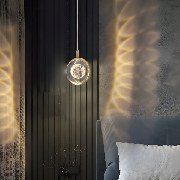 Contemporary Crystal LED Pendant Light, 3D Laser Engraved Gold Hanging Lamp for Bedroom