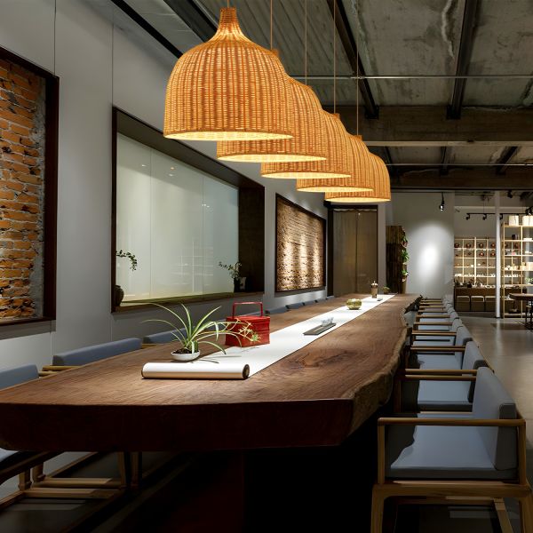 Coastal Bohemian Woven Rattan Pendant Light, Natural Bamboo Dome Fixture for Kitchen Island or Dining Room