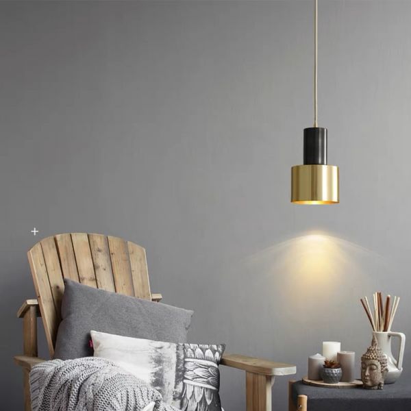 Contemporary Brushed Brass Pendant Light, Minimalist Black and Gold Hanging Fixture for Kitchen Island