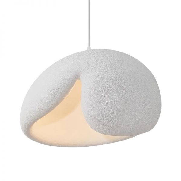 Wabi-Sabi Sculptural Pendant Light, Organic Resin Hanging Lamp with Stone-Like Texture for Kitchen Island